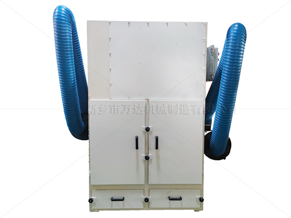 含塵氣體進(jìn)入除塵器,灰斗后,由于氣流截面的突然擴(kuò)大和氣流分布板的作用,氣流中的一些粗顆粒在動力和慣性力的作用作用下沉降在灰斗中。粒度細(xì)、密度低的粉塵顆粒進(jìn)入粉塵過濾室后,通過布朗擴(kuò)散和篩分的共同作用,粉塵沉積在濾料表面,凈化后的氣體進(jìn)入潔凈空氣室,通過風(fēng)機(jī)從排氣管排出。