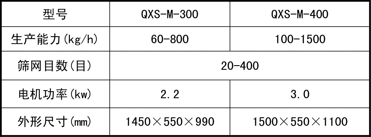 ?QXS-M密閉型氣旋篩技術參數